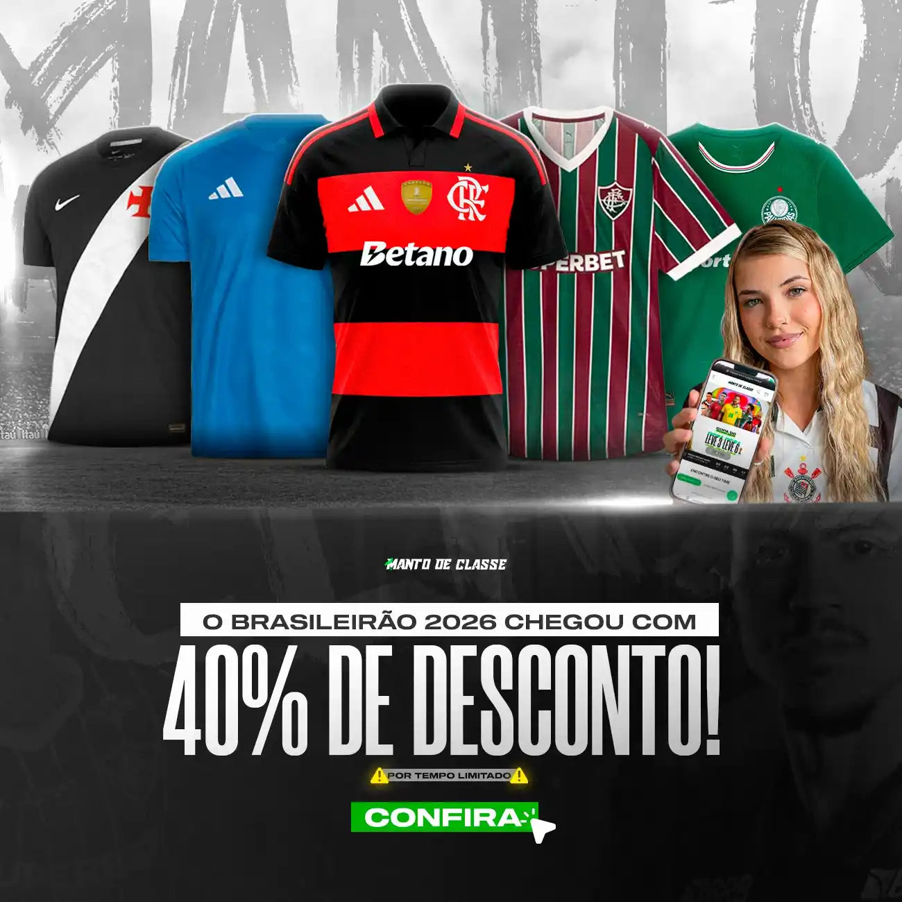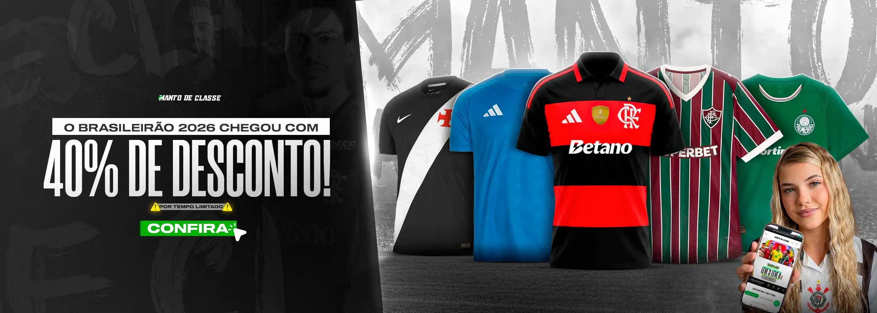 Todas as camisas de qualidade premium e com os mínimos detalhes dos mantos que você vê em campo.